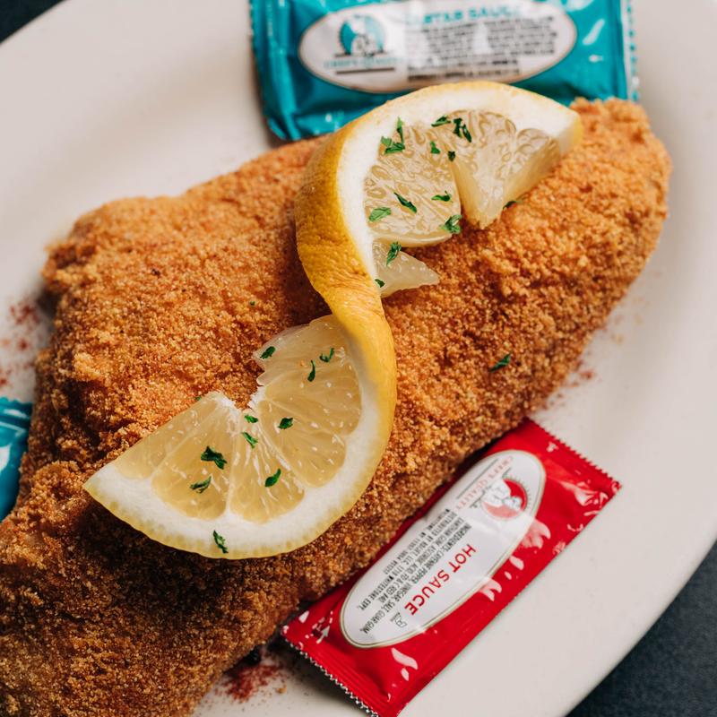 7 to 9 oz | Seasoned and breaded catfish fillet, fried to a golden brown